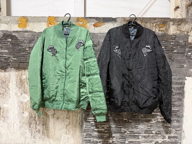 一からカスタムされたMA-1 袖にはたくさんのポケットに中の生地はオリジナルの柄をチョイス。 アメカジでもストリートでも色んな場面で活躍間違いなし。 春先でも大活躍です。